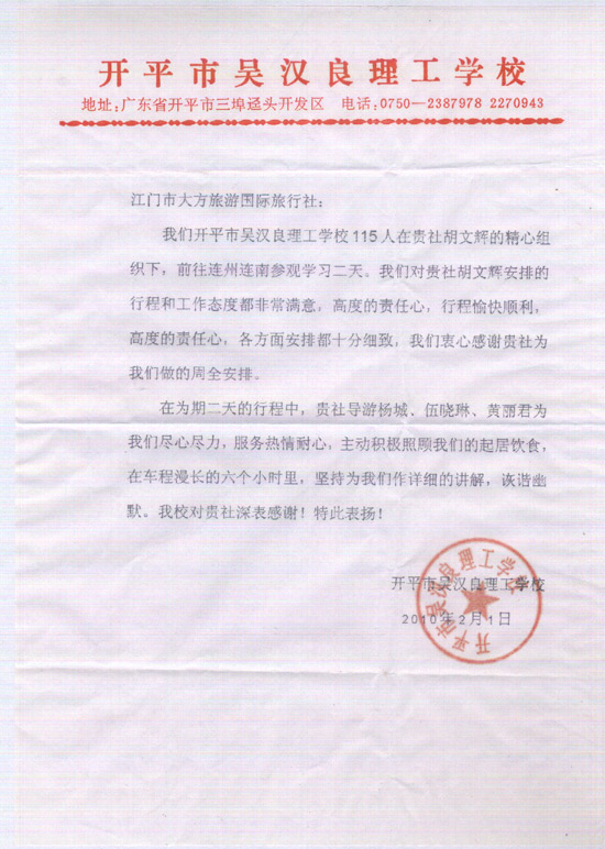 开户银行:中国工商银行江门分行  户名:江门市大方旅游国际旅行社有限公司  帐号:2012 0025 1902 4849 707