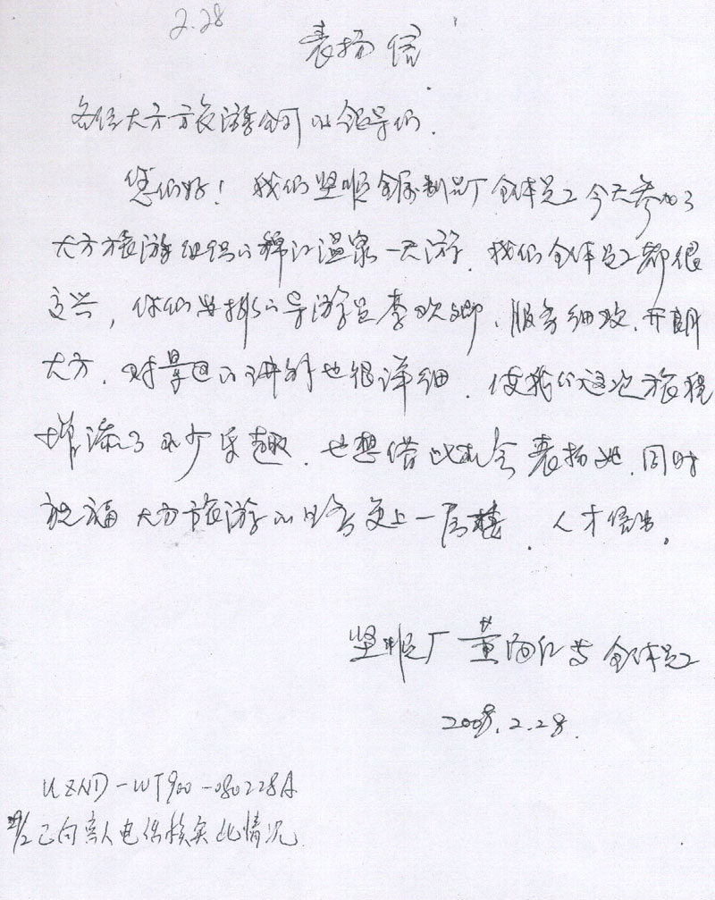 江门坚顺金属制品厂表扬信